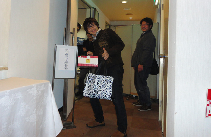 遅れて会長の到着です。