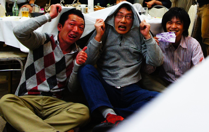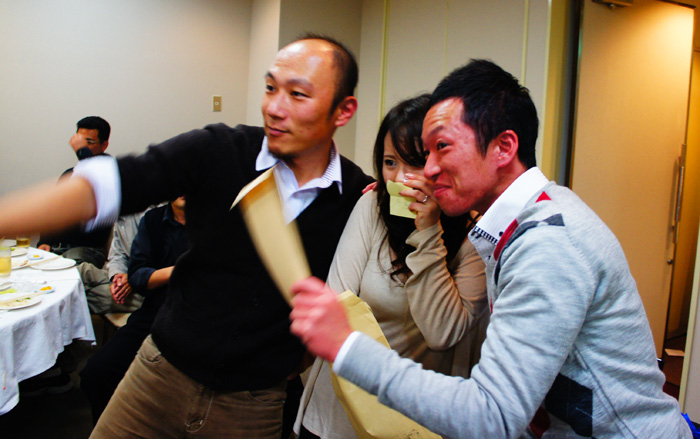 宴会終了です幹事がなんと指差し唱和!