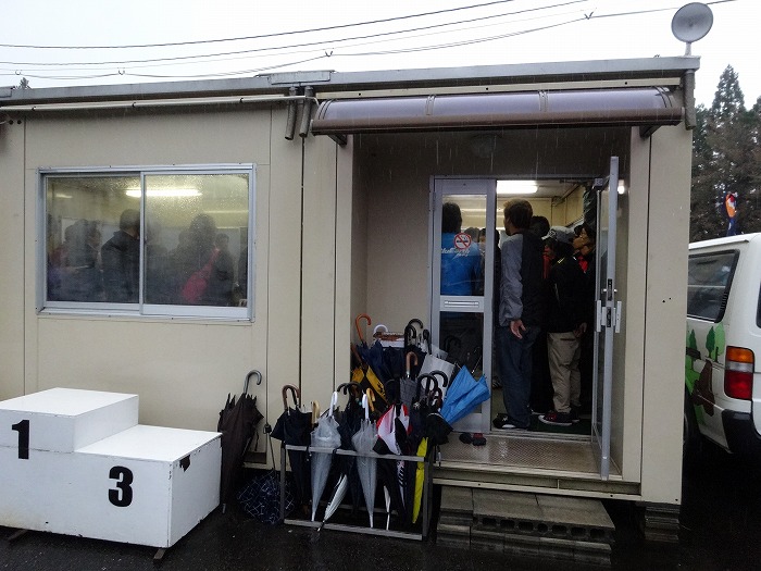 雨なので室内にスタッフが本部設営